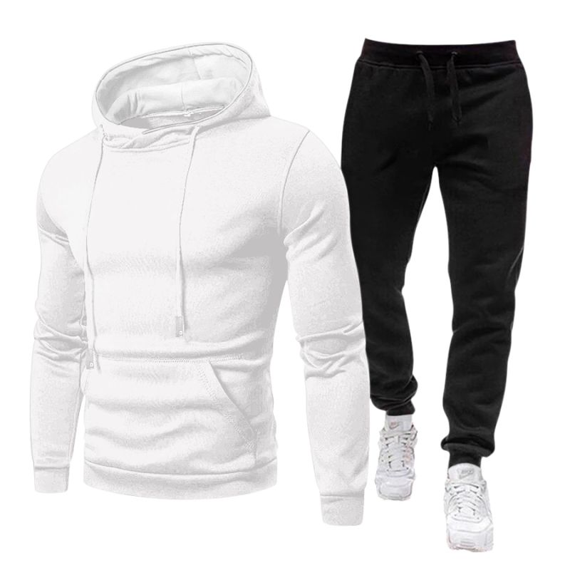 Poate exista o ușoară diferență de nuanță a culorii negre între trening și hanorac.
