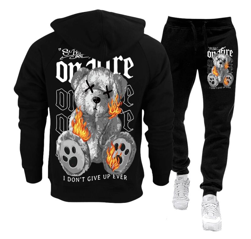 Echipa sportiva de jos si de sus.Imprimeu care nu se freca la spalare.Material - 100% bumbac.Poate exista o ușoară diferență de nuanță a culorii negre între trening și hanorac.