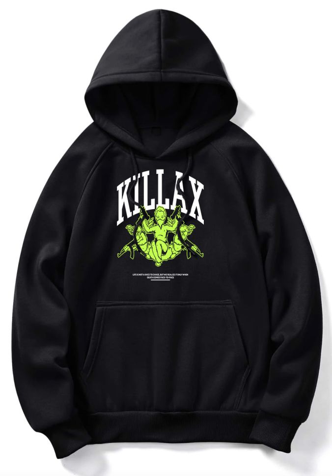 Poate exista o ușoară diferență de nuanță a culorii negre între trening și hanorac.
