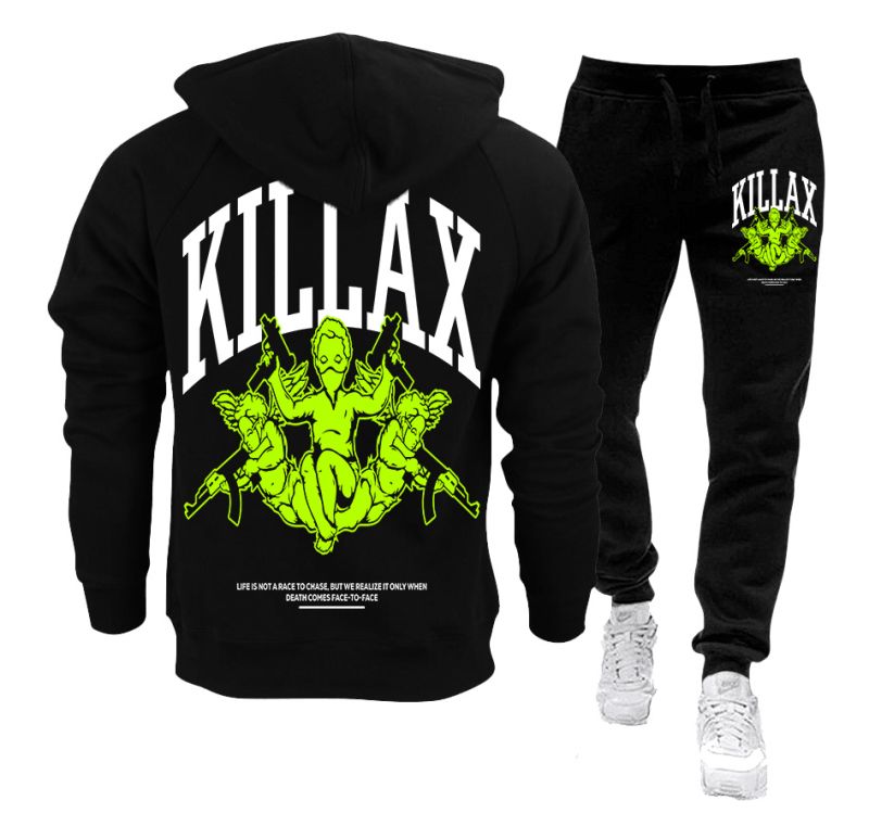 Echipa sportiva de jos si de sus.Imprimeu care nu se freca la spalare.Material - 100% bumbac.Poate exista o ușoară diferență de nuanță a culorii negre între trening și hanorac.