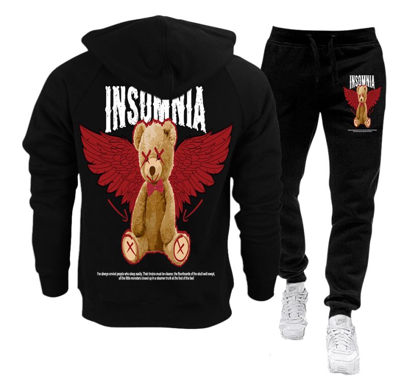 Echipa sportiva de jos si de sus.Imprimeu care nu se freca la spalare.Material - 100% bumbac.Poate exista o ușoară diferență de nuanță a culorii negre între trening și hanorac.