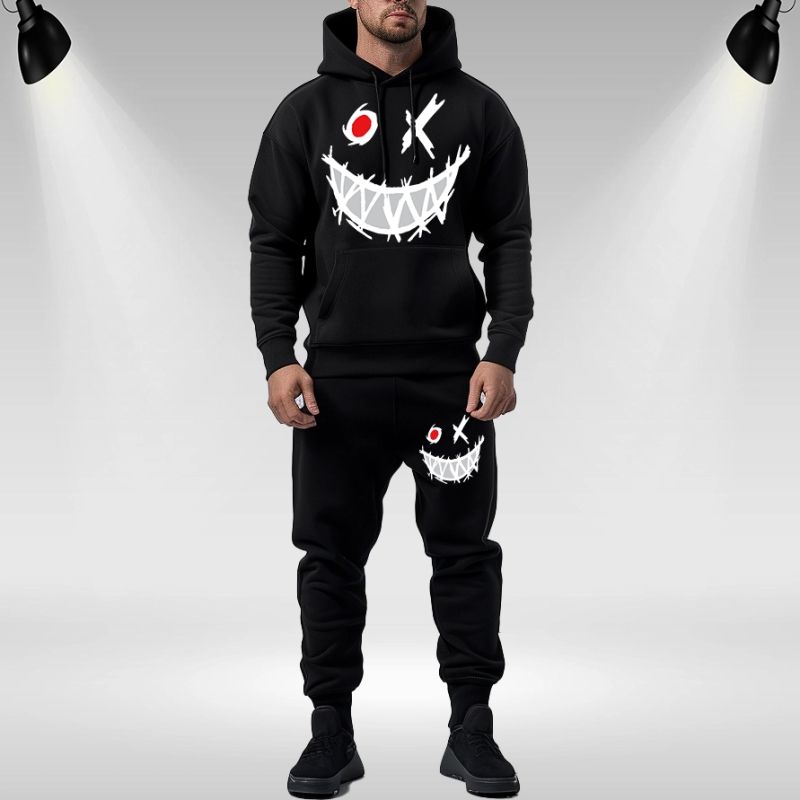 Echipa sportiva de jos si de sus.Imprimeu care nu se freca la spalare.Material - 100% bumbac.Poate exista o ușoară diferență de nuanță a culorii negre între trening și hanorac.