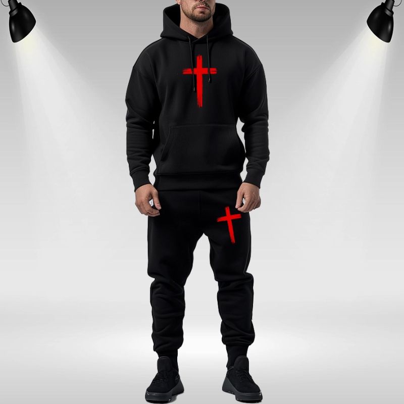 Poate exista o ușoară diferență de nuanță a culorii negre între trening și hanorac.