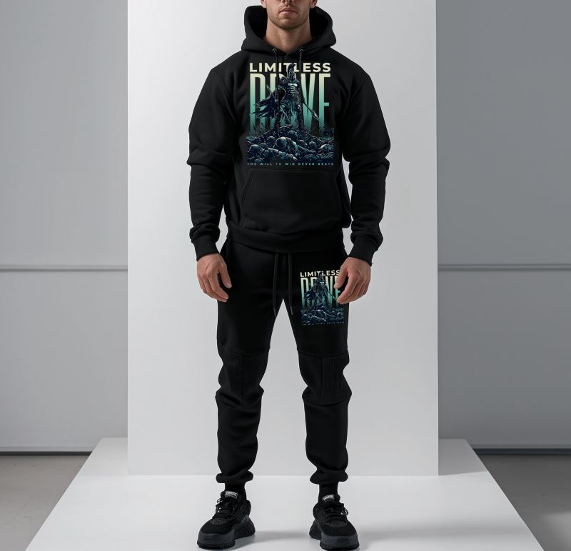 Echipa sportiva de jos si de sus.Imprimeu care nu se freca la spalare.Material - 100% bumbac.Poate exista o ușoară diferență de nuanță a culorii negre între trening și hanorac.