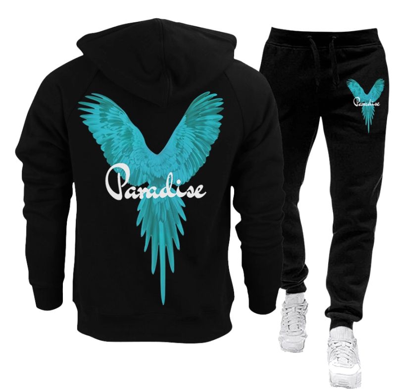 Poate exista o ușoară diferență de nuanță a culorii negre între trening și hanorac.
