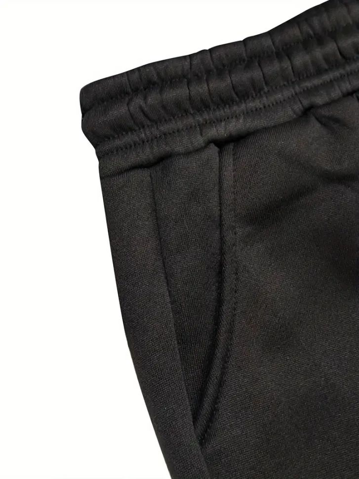 Poate exista o ușoară diferență de nuanță a culorii negre între trening și hanorac.