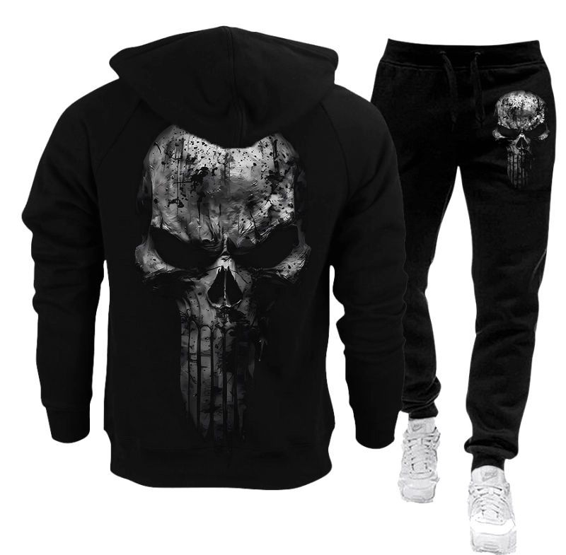 Poate exista o ușoară diferență de nuanță a culorii negre între trening și hanorac.