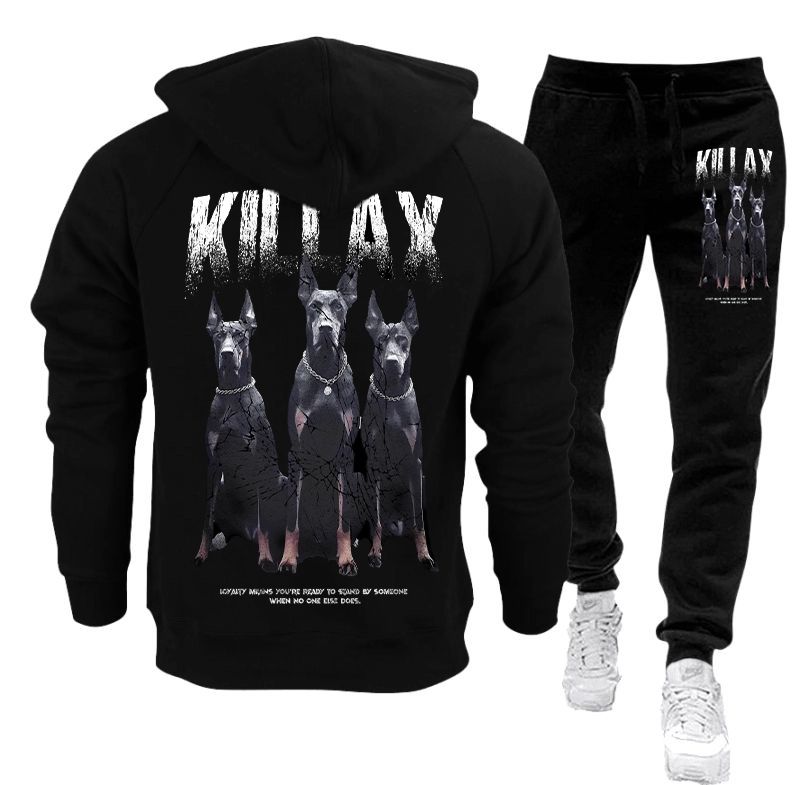 Echipa sportiva de jos si de sus.Imprimeu care nu se freca la spalare.Material - 100% bumbac.Poate exista o ușoară diferență de nuanță a culorii negre între trening și hanorac.