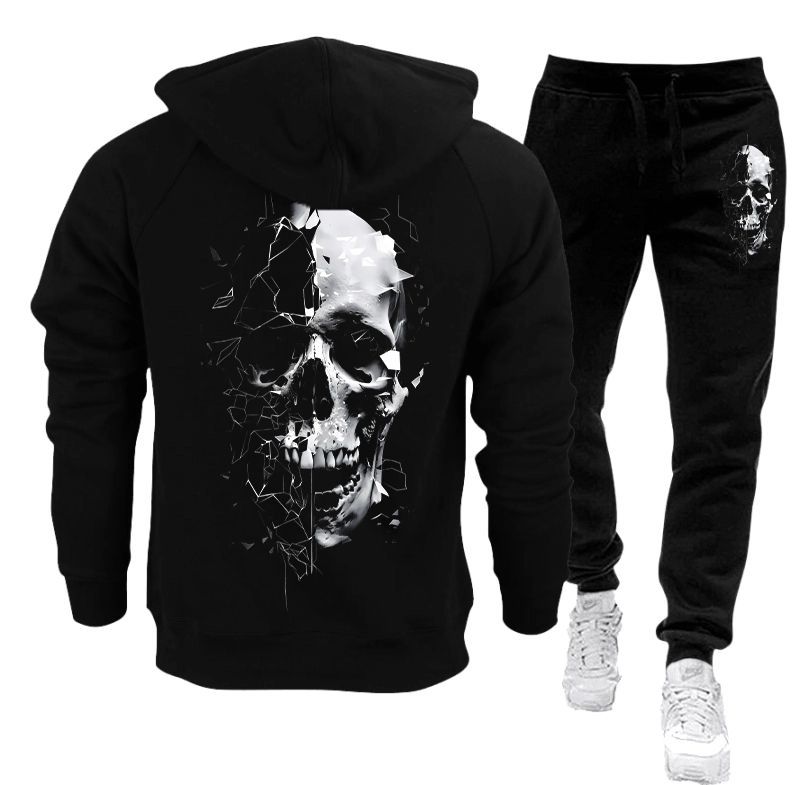 Poate exista o ușoară diferență de nuanță a culorii negre între trening și hanorac.