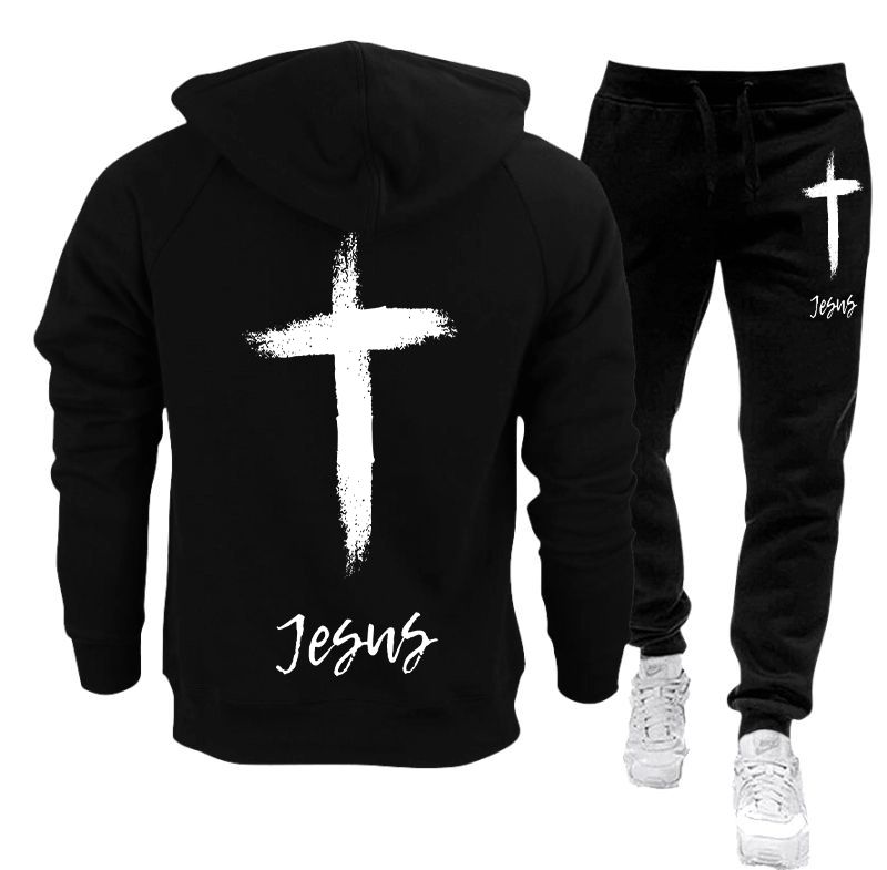 Poate exista o ușoară diferență de nuanță a culorii negre între trening și hanorac.