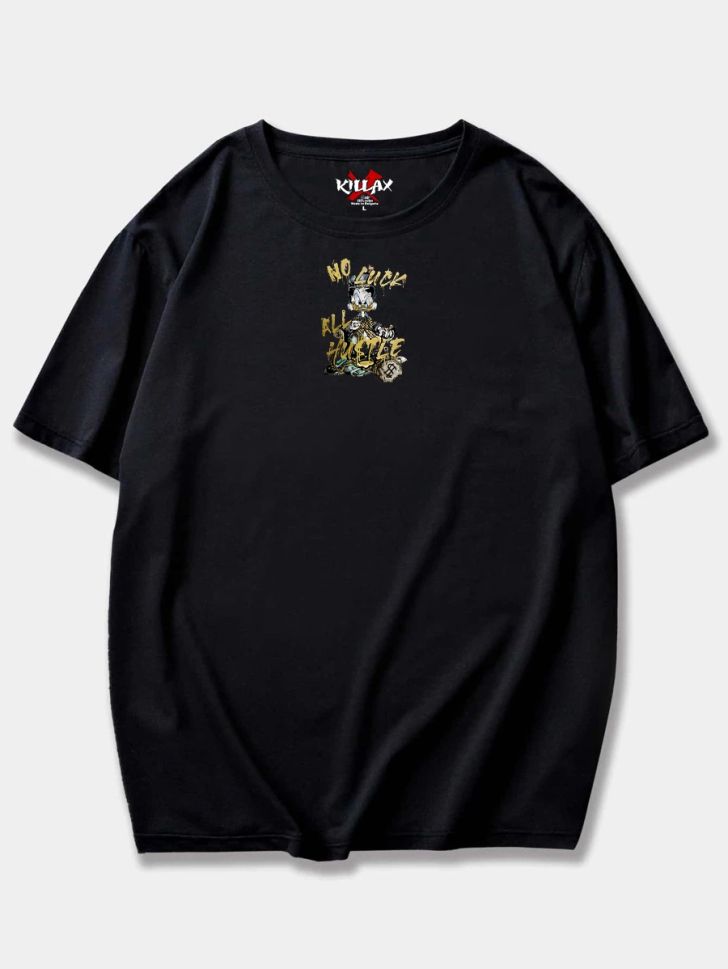 Tricou Bărbați NO LUCK ALL HUSTLE NEGRU OVERSIZED