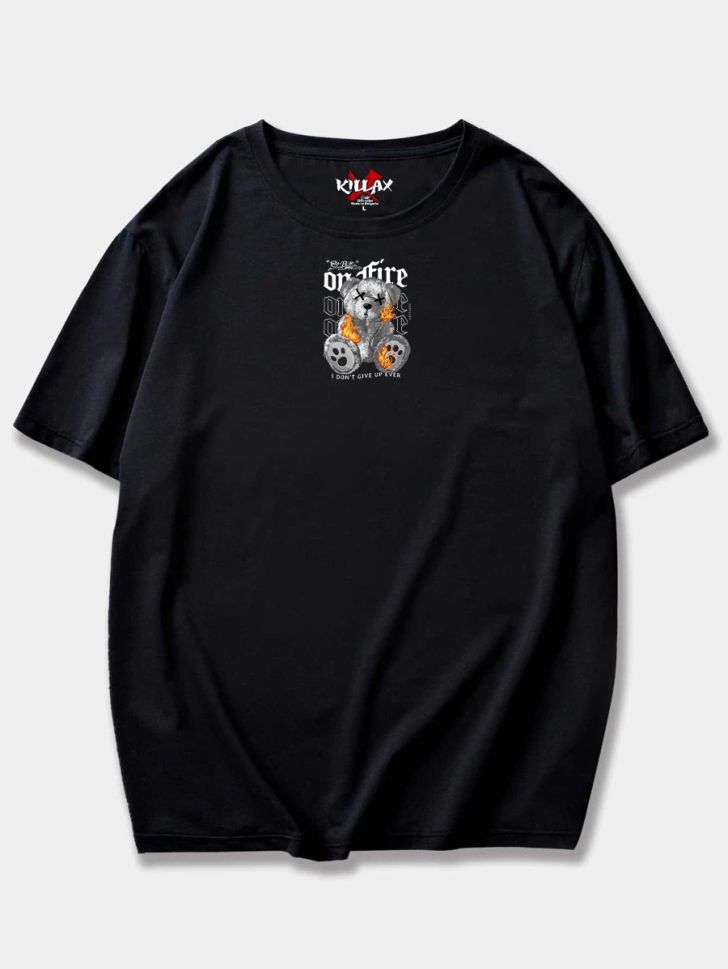 Tricou Bărbați ON FIRE NEGRU OVERSIZED