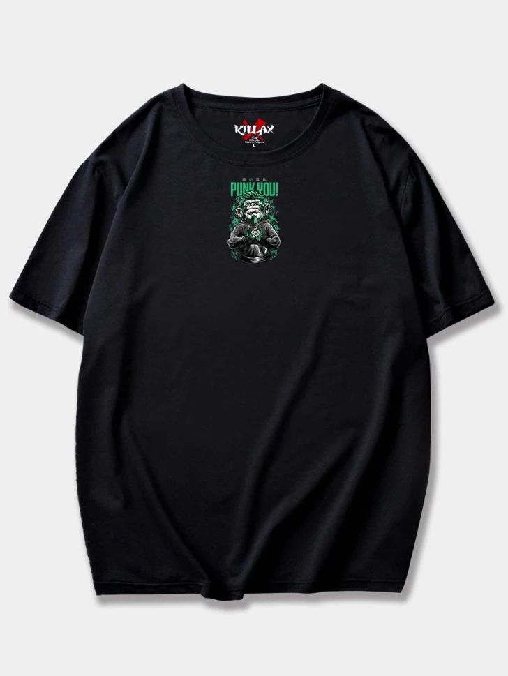 Tricou Bărbați PUNK YOU NEGRU OVERSIZED