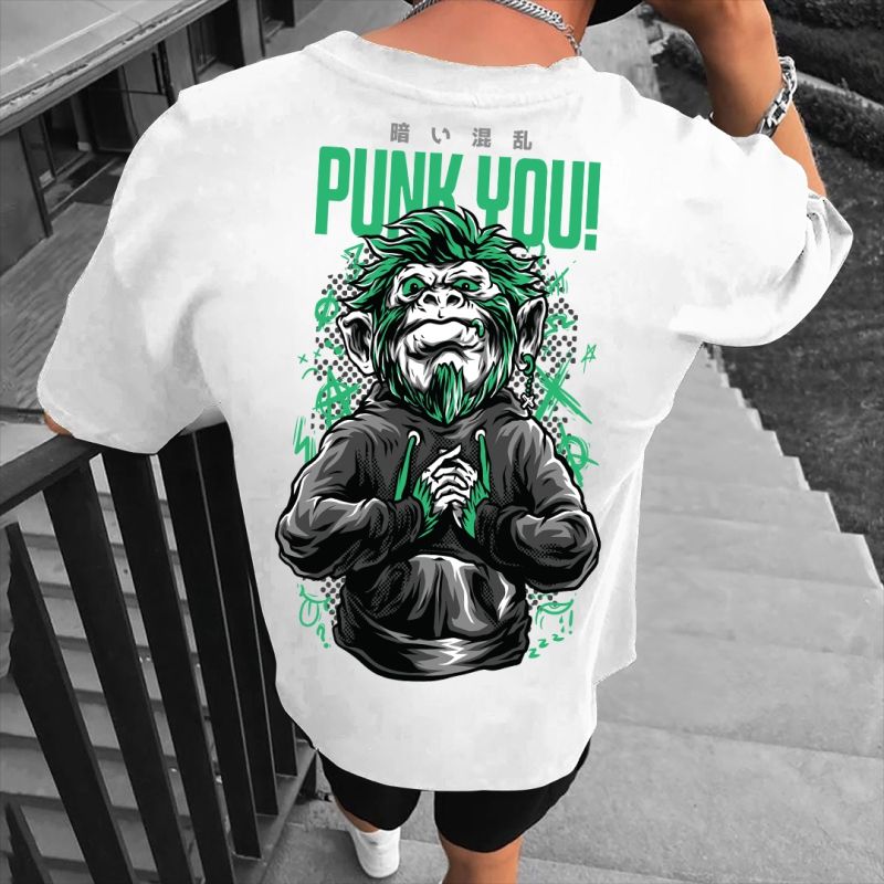 Tricou Bărbați PUNK YOU ALB OVERSIZED