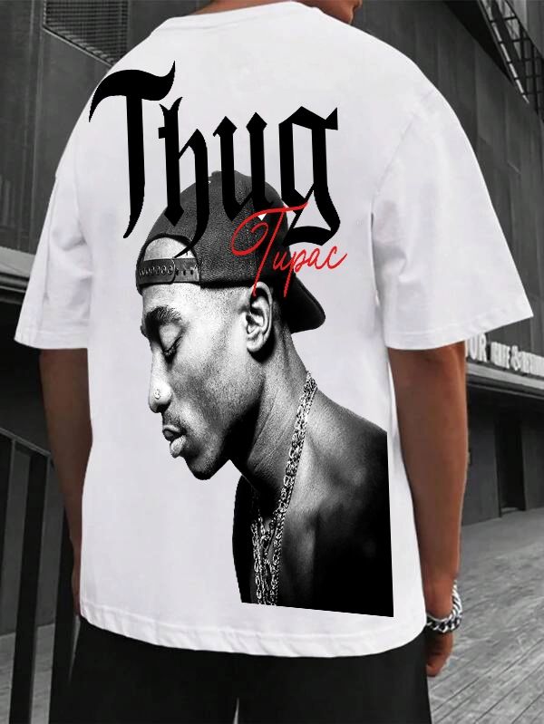 Tricou Bărbați TUPAC ALB OVERSIZED