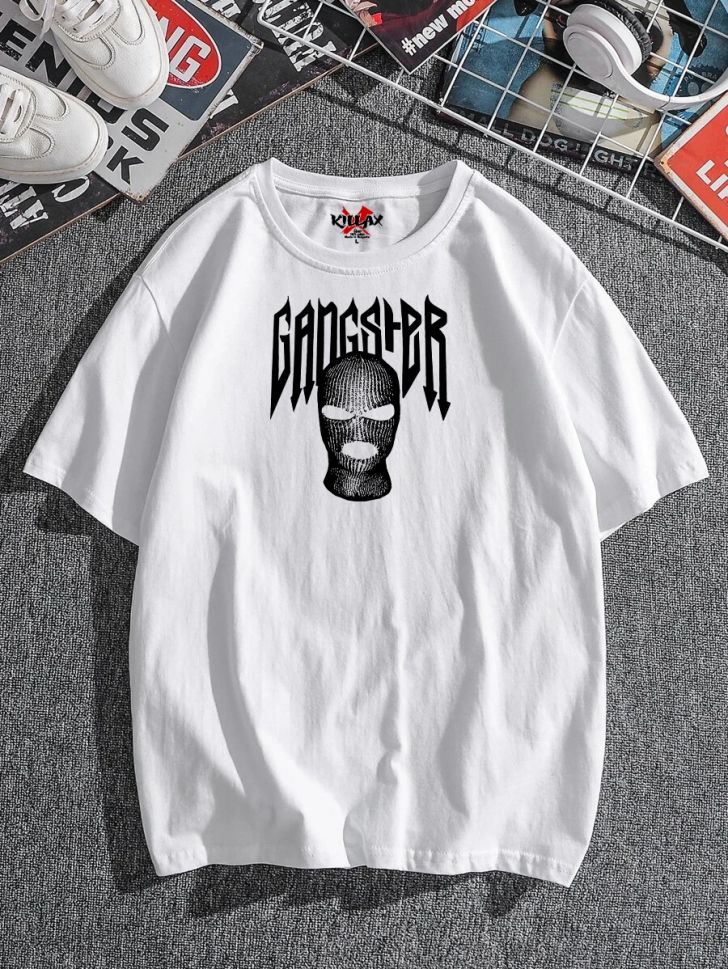 Tricou Bărbați GANGSTER ALB OVERSIZED