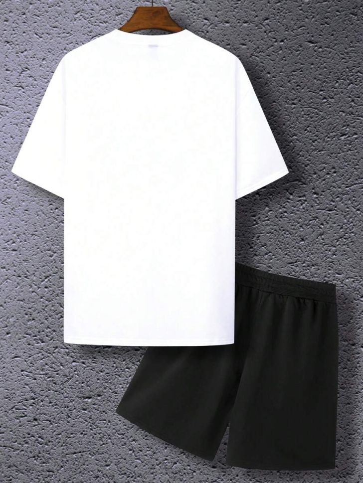 Tinuta scurta formata din pantaloni scurti cu doua buzunare si tricou.Materialul este bumbac 100% ceea ce il face potrivit atat pentru viata de zi cu zi cat si pentru antrenament.