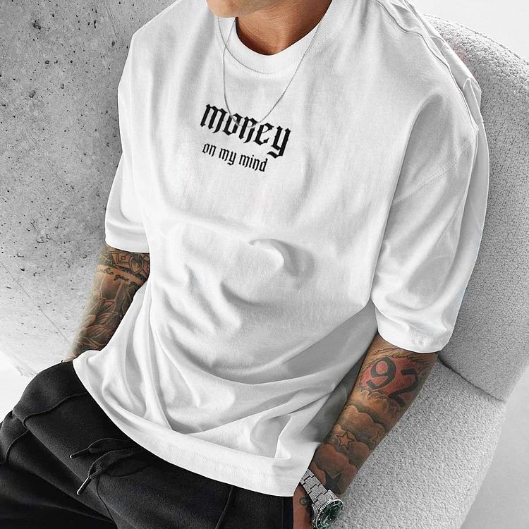 Tricou Bărbați MONEY ON MY MIND ALB OVERSIZED